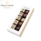 aus Zartbitterschokolade, mit weißer Schokolade dekoriert (Kakaoanteil: mindestens 58% in der Zartbitterschokolade)